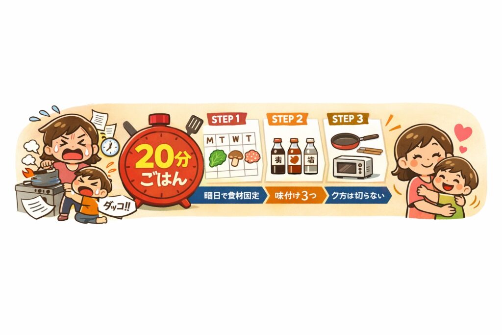 むしろワンオペこそ“迷わない仕組み”が効果的です。気合いや根性ではなく、決断回数を減らす設計がポイント。曜日固定・味付け固定・夕方は切らない、この3つだけでも体感は大きく変わります。