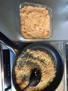 ④パン粉適量と油を炒め合わせ、狐色にする。