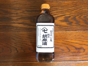 我が家が使用しているプラスチックボトルタイプのごま油。
