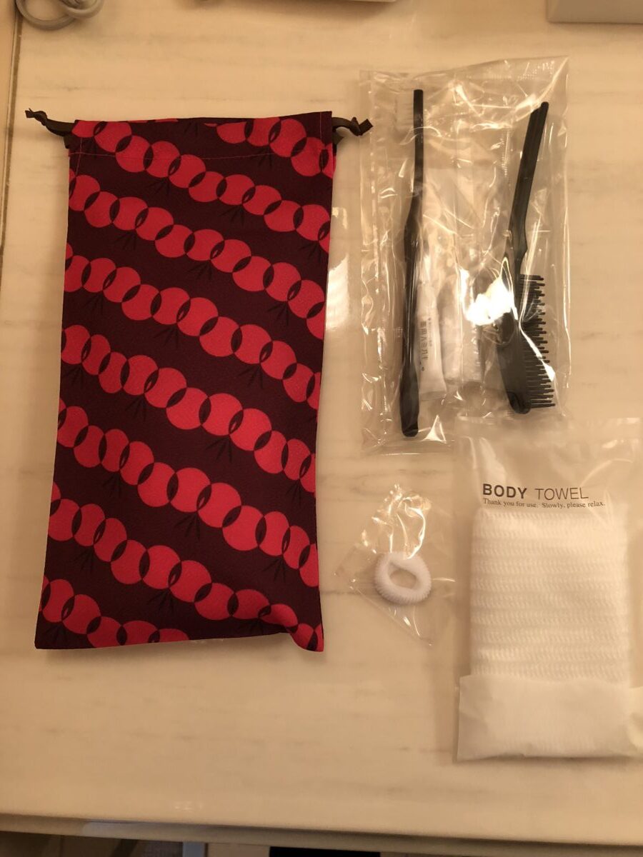 アメニティは有難く使用しましたが、巾着袋は置いて帰りました。