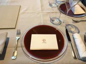ソムリエのワインテイスティング講座の後、ディナー会場へと向かいます。