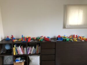 あまりにも没頭しすぎているので、棚の上のその世界だけはお片づけしなくていいよと言っています。