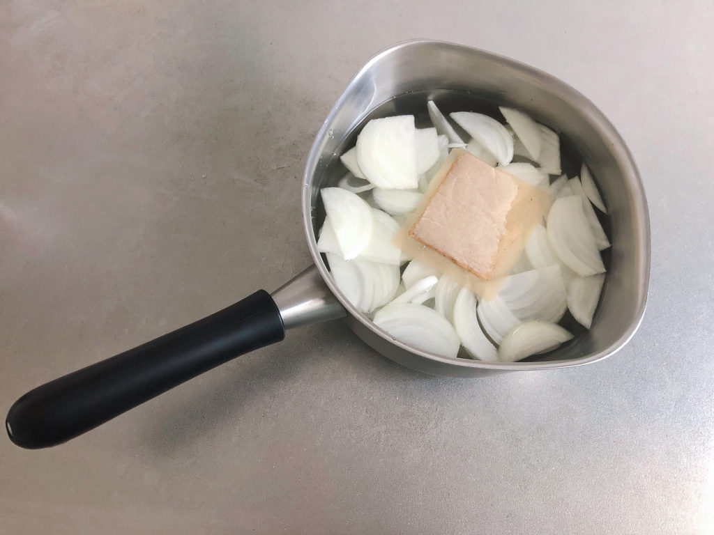 この日は玉ねぎとワカメのお味噌汁。