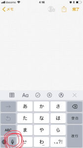 メモの画面を開いたら、赤丸のボタンを押して話しかけていきます。
