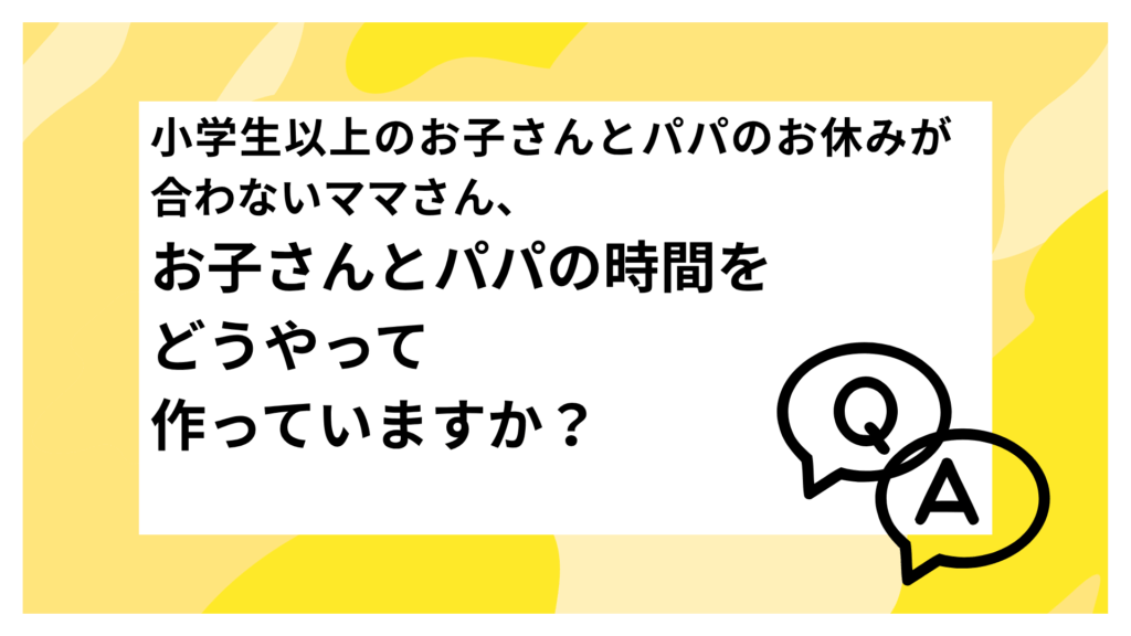 小学生以上のお子さんとパパのお休みが合わないママさん、お子さんとパパの時間をどうやって作っていますか?
