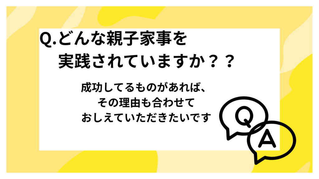 Q.どんな親子家事を実践されていますか??成功してるものがあれば、その理由も合わせておしえていただきたいです