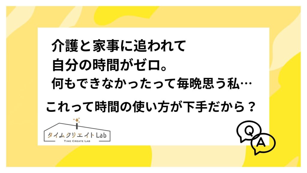 Q:介護と家事に追われて、自分の時間がゼロ。何もできなかったって毎晩思う私…これって時間の使い方が下手だから?