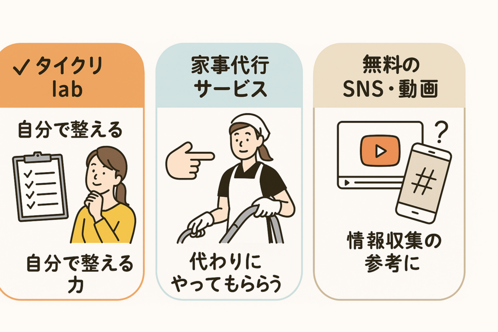 | 対象 | 自分の暮らしを“根本から変えたい”ママ | 一時的に家事の手を減らしたい人 | まずは情報を集めたい人 |